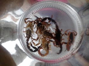 Moradora fotografa escorpiões capturados em Ferraz de Vasconcelos
